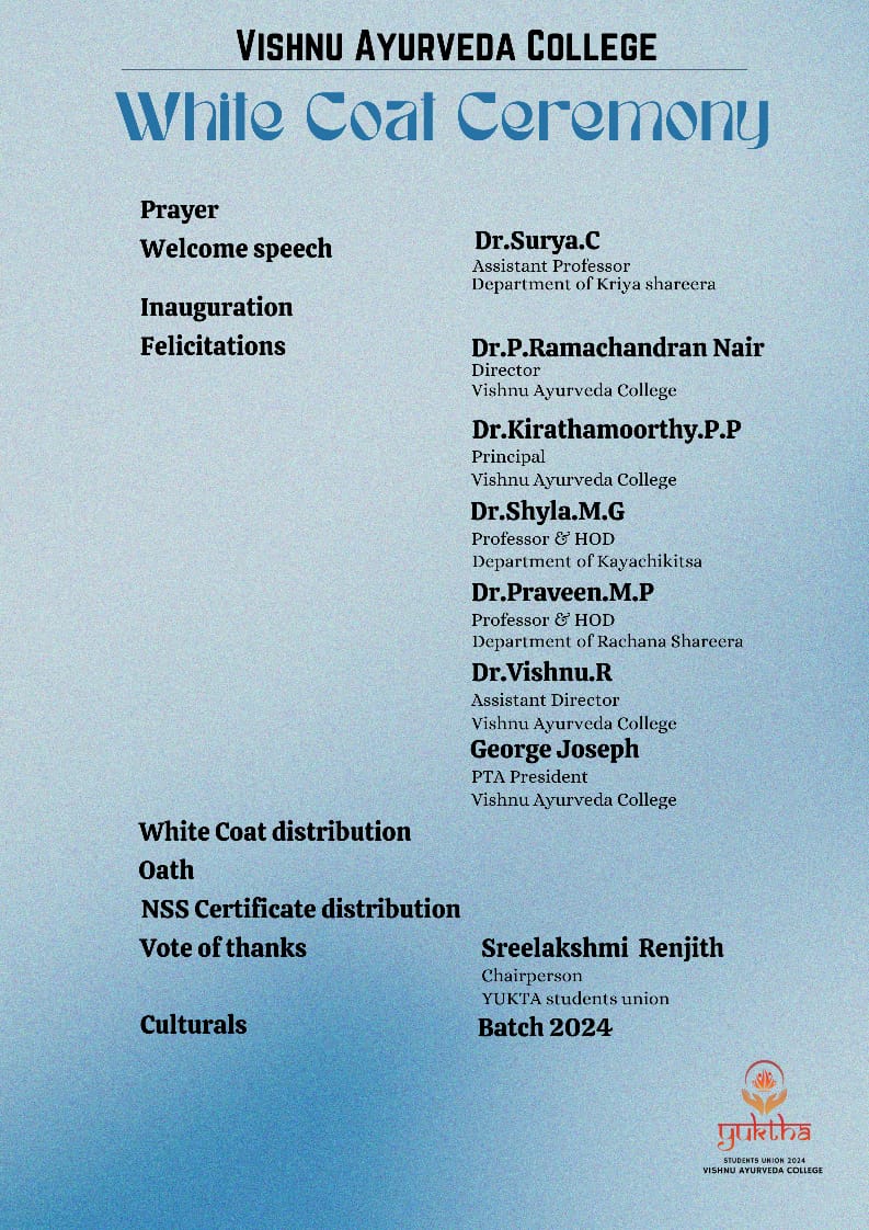 VAC won the ever rolling trophy of yoga shreshta-inter Ayurveda yoga competition held at Ashtangam Ayurveda vidyapeedham..Nathania of second year got the individual champion ship